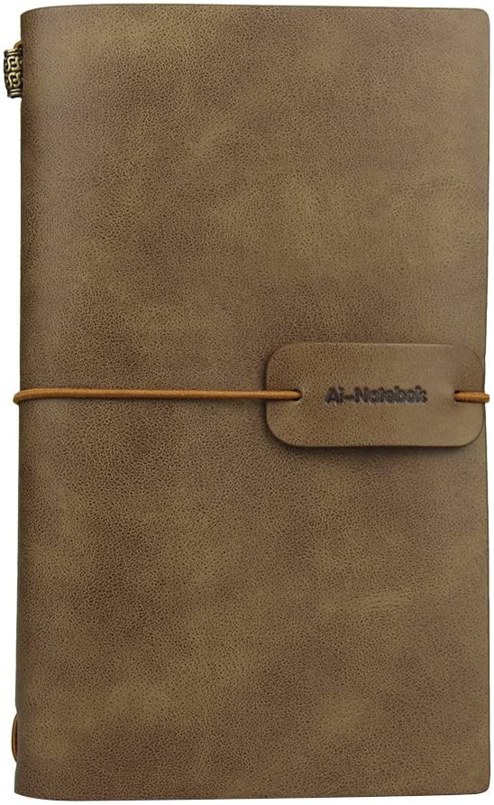 Travel Journal Notebook Vintage Retro Handmade Leather Lined Journal Refillable Note Book for Taking Notes by ai-natebok, 4.72 X 7.87inch (White Coffee)
